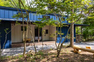 “blue in green” — 緑に包まれた青い箱で、自然と静けさを感じる特別な空間です。